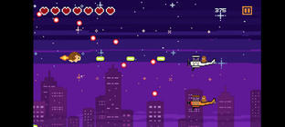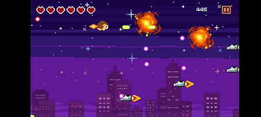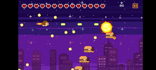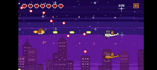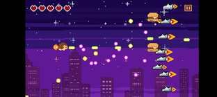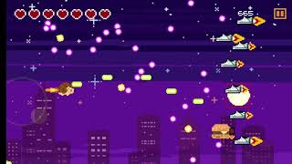 You are lucky that you will not understand the lyrics. It’s a pew pew shooter where flying hedgehog fights the hordes of burgers, snickers and pigeons. The best thing about this game is that it is really short.