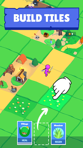 Run loops, fight monsters, build new tiles, collect best loot and upgrade gear!