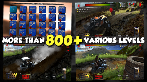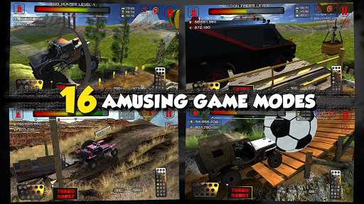 Get ready to take on over 800 levels with various environments and up and down hills. Choose from 13 different vehicles, including a Buggy, Jeep, Hot Rod, and Military Jeep, among others. With 16 various game modes such as Time Trial, Fuel Madness, Gentle Push, Football, and many more, you won't lack adventures to try. Moreover, explore five different stages: Forest, Mountain, Canyon, Vulcan, and Snowy, all with breathtaking 3D graphics and realistic physics.