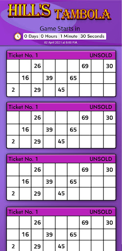 Tambola, Indian Bingo, is a number calling game where the random numbers from 1 to 90 are called by the in-app caller/dealer and the players need to strike the called numbers off their tickets.