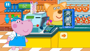 What to do if scanner cannot read purchase barcode or the tape of the cash register ends up? What to do when the client with a bad mood does not want to pay for purchases, or there is not any price on the products? How to get out the stuck receipt and find a correct product on the showcase? What uniform to choose to make the supermarket manager happy and at the same time to make the security let us in? How is it better to pay for the purchases, with a credit card or banknotes? And what to do if the conveying belt is broken? The answers to all this questions you could find in our new kids game Supermarket Cashier. Are you ready to serve clients and make them happy together with Hippo? Choose the most beautiful uniform, smile to the security and start working. Let your selling be funny!