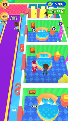 Climb to the top: Start the game as a simple bellhop single-handedly cleaning rooms, greeting guests at reception, collecting payments and tips, and keeping the bathroom stocked with toilet paper. As your bank balance expands, upgrade rooms and facilities, and employ new staff to help keep up with the growing demand at your hotel. Your guests may be sleeping comfortably, but there’s no time to rest for a determined hotel tycoon.