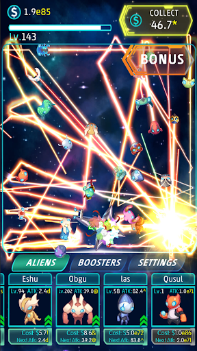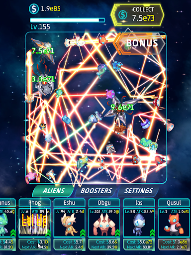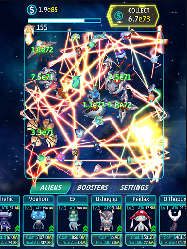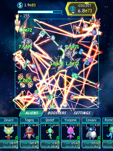 Idle Alien is easy. Upgrade your super aliens to destroy invader spaceships faster!