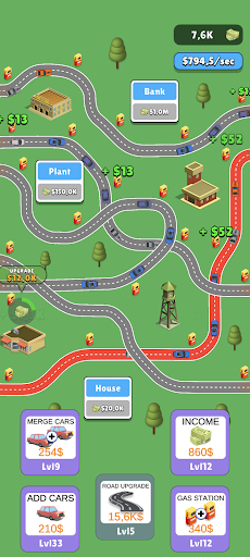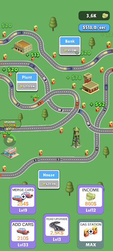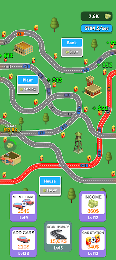 Earn money as cars pass by nearby gas stations. Utilize your hard-earned cash to improve roads, increase the number of cars on the streets, add new gas stations, boost the income from these essential buildings, and enhance your existing cars. Invest wisely to optimize your road network and maximize your earnings.