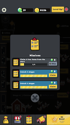 The adventure doesn't end with egg production alone! Send your adventurous chickens on thrilling expeditions to far-off lands. Uncover valuable goods, priceless treasures, and hidden keys that unlock mysterious chests. Each expedition is a chance to claim unique rewards and accelerate your path to chicken supremacy.