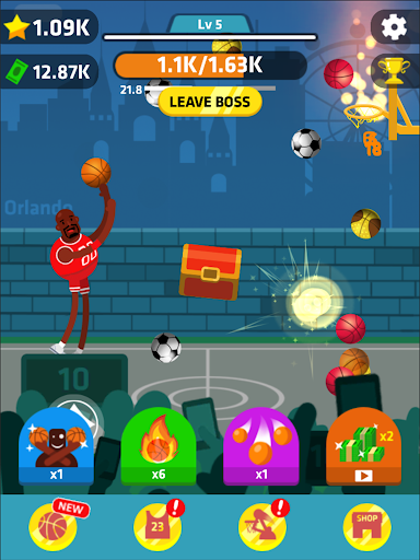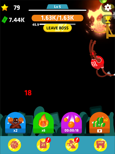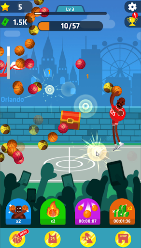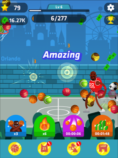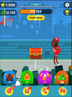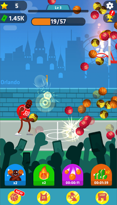 Use boosters to enjoy Idle Dunk Masters as idle game: Auto throw, X2 damage, Ball rain, X2 Cash.