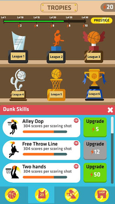 In Idle Dunk Masters, you can unlock your favorite dunk skills: Alley-Oop, Free Throw Line, Tomahawk, Two Hands, Windmill, Between The Leg, Double Clutch, Rock the Cradle, Off the Backboard, Superman!