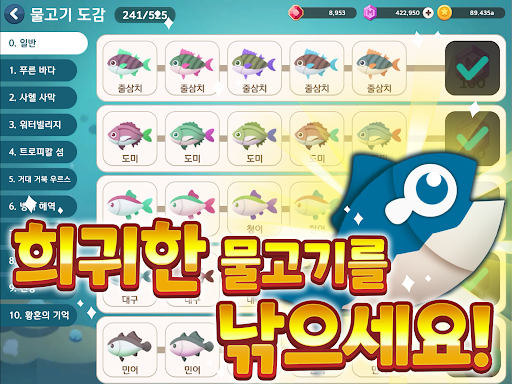 - Catch a variety of fish in the fantastic sea.