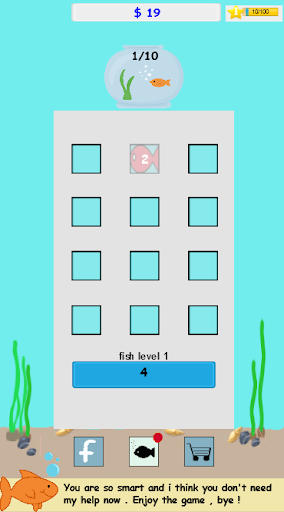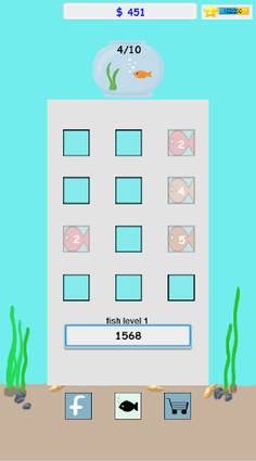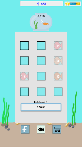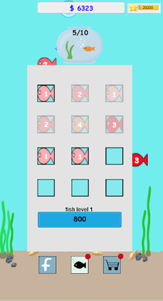 Merge the fish if they are same level . Higher level fish will auto earn more money . Upgrade some option to earn money faster .