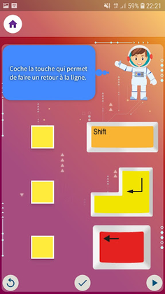 Ayant suivi les cours du manuel Informatique et Robotique au primaire 1, cette application consolide les acquis de l'apprenant et teste sesconnaissances.