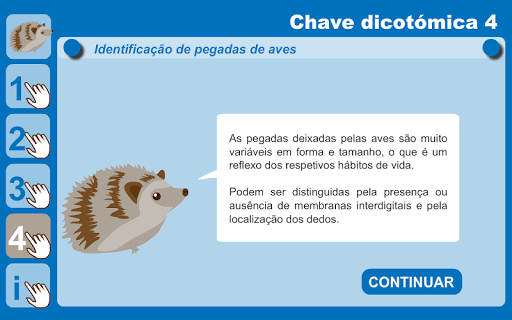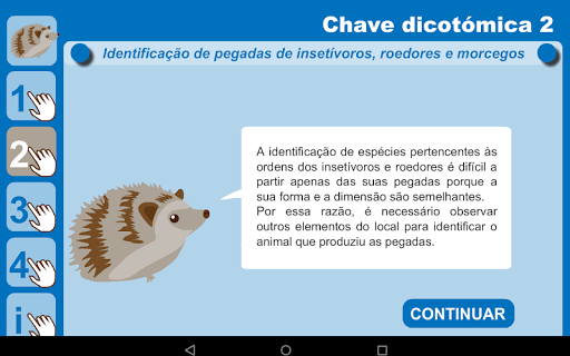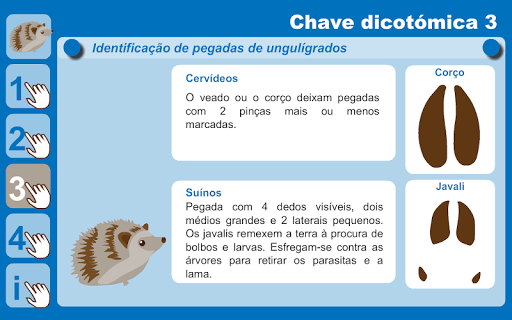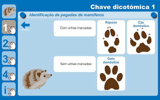 A atividade inclui uma aplicação e guiões para o aluno e professor. O guião do aluno inclui várias tarefas que exploram as características anatómicas e comportamentais dos animais, o modo como se podem identificar a partir das pegadas e atividades associadas à promoção do bem-estar animal. O guião do professor inclui sugestões para a exploração das tarefas propostas na atividade.