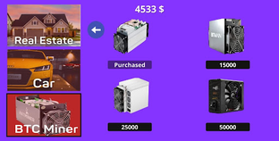 You can buy Bitcoin Miner from the Market and do bitcoin mining in the game. You can invest in this game, buy a house, a car and become rich in the game.