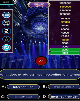 2023 Latest KBC with all new lifelines and realistic voiceNew Questions from our online databaseTimer According to SectionsHindi and English Both Language Question And OptionsTop Score Board To Know Your RankingOther New Good FeaturesPlay And Educate Yourself with Entertainment