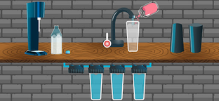 We can also make soda sweet water in our children's pastry kitchen. We filter the water, add a few flavors and dyes, now we pass it through a siphon to make the most delicious drink.