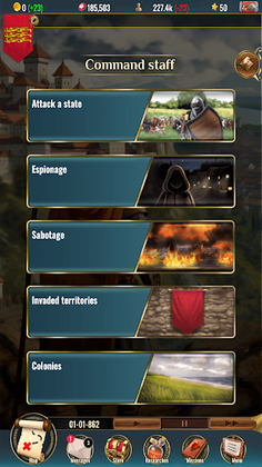 ✔ Spies and Saboteurs. Use spies to scout out information about the enemy’s army before each battle. Hire saboteurs to conduct secret operations on the territory of your enemies, saboteurs will help significantly reduce the combat potential of the enemy.