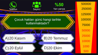 Kim milyoner olmak ister yarışmasını sizler için oyuna dönüştürdük.