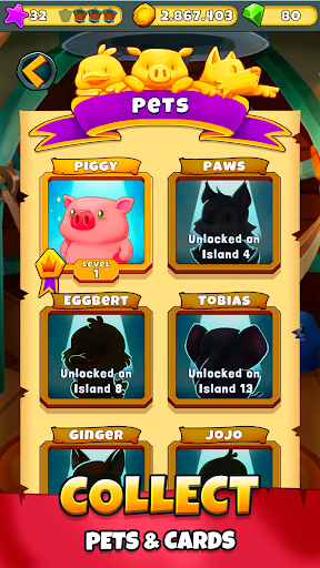 Complete pet quests for more rewards and free Spins! The more pets you get, the more spins and coins you can win!