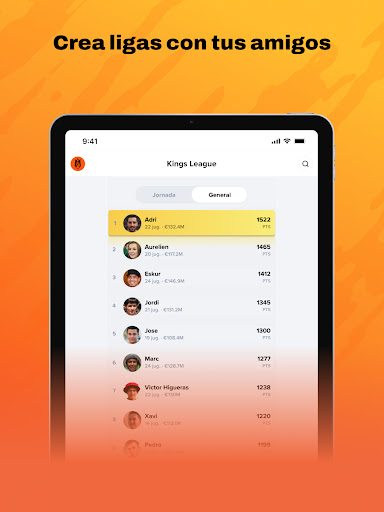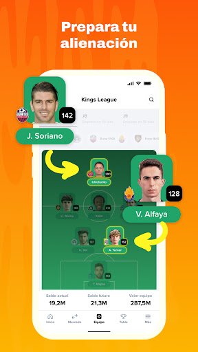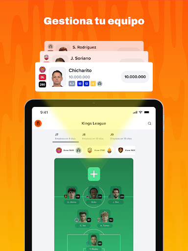 Kings League Fantasy MARCA is a football manager game where you compete with friends or against other users from around the world to win the Kings League. Sign the best players within your budget, prepare your team before the matchday starts with a competitive lineup... and play. Based on your players' real-life performance, you'll earn points. Compete week-to-week to become the champion.