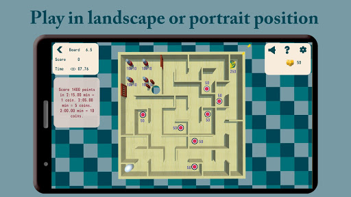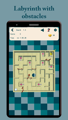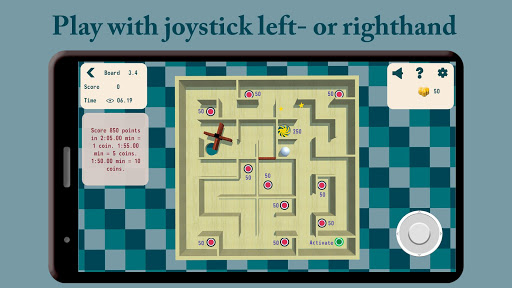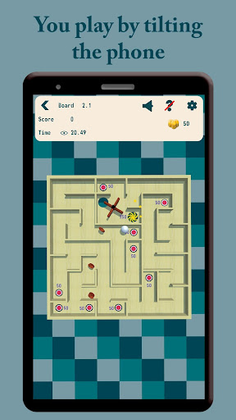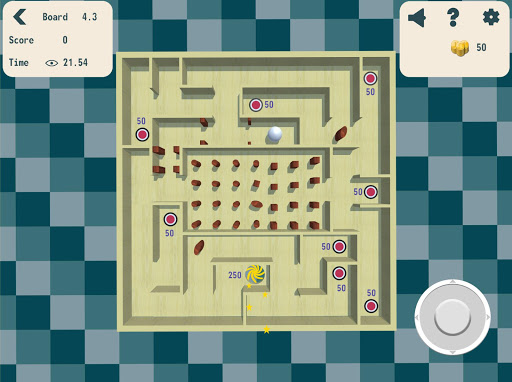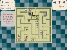 Labyrinth Challenge has various levels and boards, where you steer the ball trough a labyrinth. Tilt device or use joystick on screen to steer the ball. You collect points before the ball reaches the finishing hole.