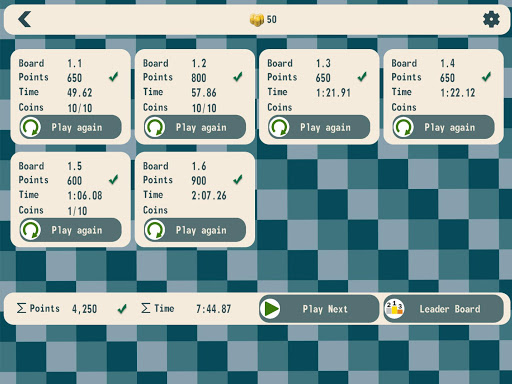 In Labyrinth Challenge there is a goal on each board, on how many points you must collect to complete the board. Labyrinth Challenge is about reaching the point goal as fast as possible. You can always repeat a board if you want to improve your time.