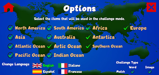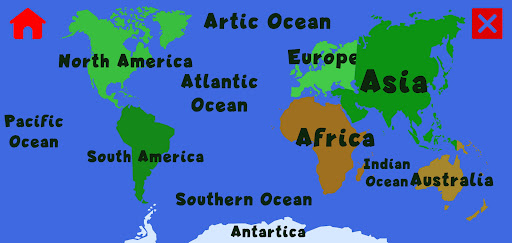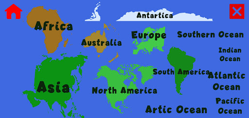 -Learn while having fun. Move the continents around to snap them where they belong.