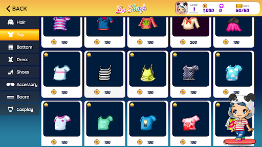 Customize your avatar with thousands of beautiful costumes. Use COINS to purchase various costumes to adorn your avatar. You can also collect PARTS to exchange with rare costumes. Let’s visit the shops and collect your favorites.