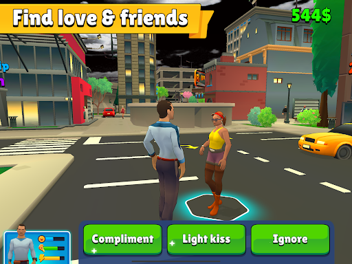 This is an RPG style game with a unique engine. Develop your career, buy expensive cars, apartments, houses, real estate, business, build your network, look for friends, girlfriend/boyfriend, flirt, you can have fun to the fullest.