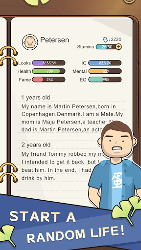 Everything in the game is random, thus you have more freedom. You will be randomly assigned to a family in a city by the system. Then you will experience all kinds of experiences, such as working and starting a business, getting married and having children, getting old and die. You can also experience the things that you always want to do in real life but dare not do. Your gender, attributes and talents are set randomly, but your every choice can change your destiny. You can experience countless lives in this game and get different results. If you want to be a successful person, please give full play to your intelligence!