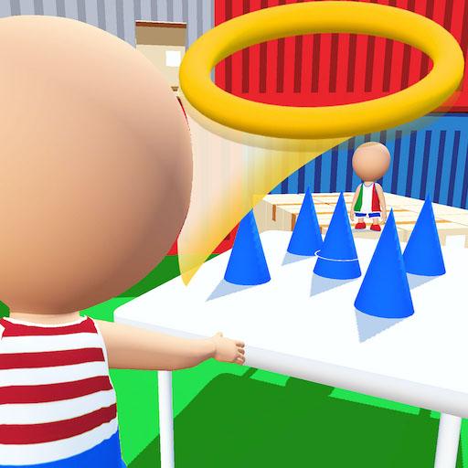 Toss and put the hoop in cones.