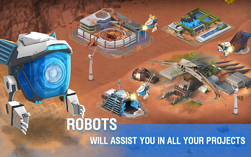 Build facilities. Use the unique natural resources of the planet and the most advanced robots!