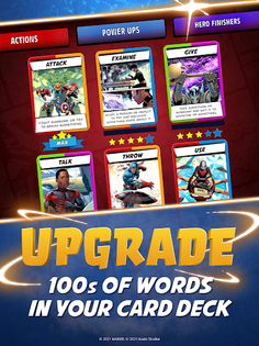Your hero deck and power up your abilities. The choice is in your hands - level up your favorite word cards to improve their power.