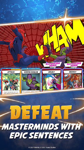 Hundreds of wonderful words. English is an expressive language jam-packed with awesome adjectives and amazing adverbs. Power-up sentences during combat, and watch your dictionary grow. Marvel Hero Tales encourages children to explore language and expand their vocabulary - different word combinations yield unique outcomes, and can be rewarded with awesome boosts.