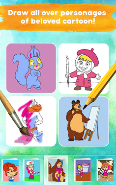 🌼In these learning games you can use all the colors in the world! Your child will never get tired of using children games drawing book, coloring and drawing cool pictures and play color girl games with Masha. A hint: paint over everything with a magic wand and the original picture will be ready!