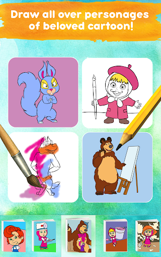 - painting games for boys with the characters of the famous cartoon, where Masha accompanies the player completely.