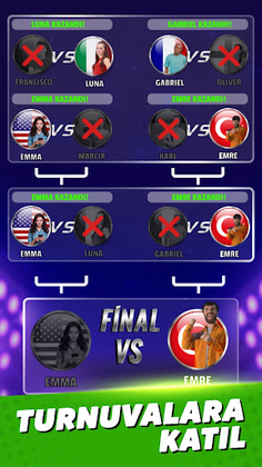 Gerçek zamanlı bu oyunda, dünyanın her yerinden oyuncularla eşleş, rakibini yen, ödülleri topla! Her gün yeni eklenen birbirinden keyifli turnuvalarla puanlarını katla, güçlendiricileri kazan ve oyunun master’ı sen ol. Liderler sıralamasında üst sıralarda yerini almak için hemen oyna!