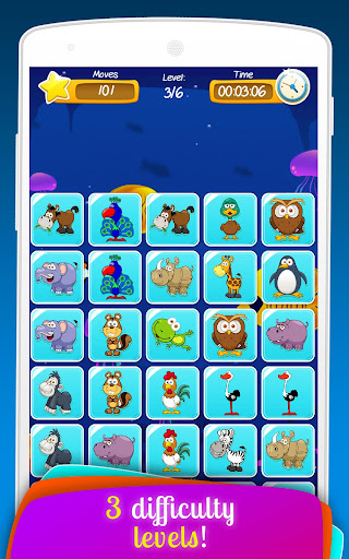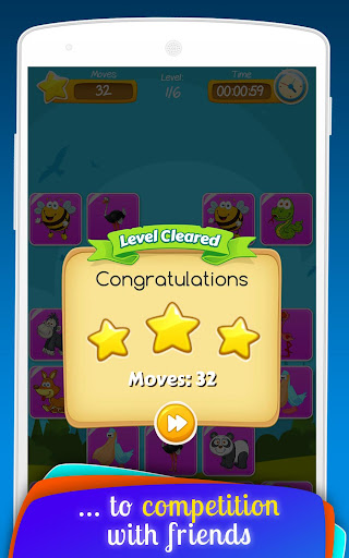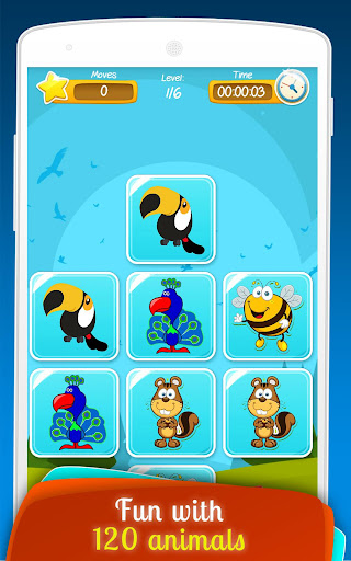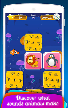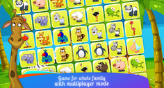 The land of animals has gone crazy! On the news that with the help of the game, animals can meet with people, they have started to sneak into it. Initially intimidated by colors and graphics, they hid behind the cards, thus losing contact with their companions. If you want to become the king of the land of animals, you need to know the animals hidden under the cards and find their companions. If you manage to lead them to meet, they will reward you with their shout of joy. As a king, you must demonstrate your perceptiveness and good memory, and when you reach it, you will return from the expedition with a magical chest which guarantees you a knowledge of the land of animals in as many as 15 languages. Do you want to speak many languages? So be cunning, like a fox! Combine learning with monkey pranks and become the king of the linguistic land!