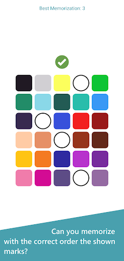 The purpose of the Brain Training Games is to memorize the marks that appear gradually in the table.The way in which the signs appear is the following: First a sign appears randomly, and after a short period of time it disappears. You must memorize where the mark appeared and press the corresponding colored button. Then, the first sign appears again in the same point as before, and after a period of time, a new mark appears at a random point. Now you must press the colored buttons with the same correct order that the marks appeared. Similarly, the process continues and a new sign appears. You must memorize all the marks, with the correct order that marks have appeared, and press the corresponding colored buttons.