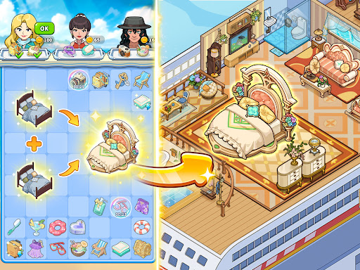 Choose floors, facilities, and themes to rebuild and design the best cruise ship!