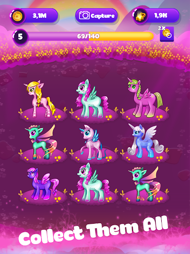 It's simple and addictive fun. See your ponies go through an evolution. Gain coins even when you are idle or offline.