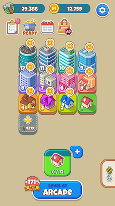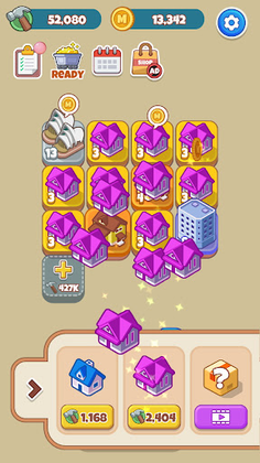 Solve puzzles by matching buildings and get the upgraded building.