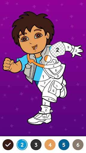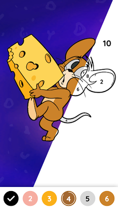 On a color button you see a number like 1,2,3… and so on just find those numbers on a cartoon image and tap and color it. Different colors have a different number, once you colored all of the parts with the same numbers now it’s a turn for the next color 🔢.