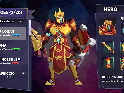 But you're not alone in this journey! You can mix and match heroes, weapons and power-ups to create endless combinations of playstyles. With 20 heroes to choose from, each with their own fantastical story, you can uncover the different paths available to you as you explore the massive mind palace of the Mad King.
