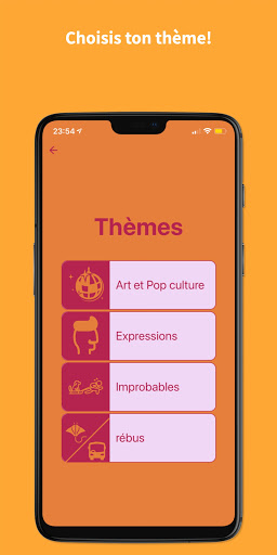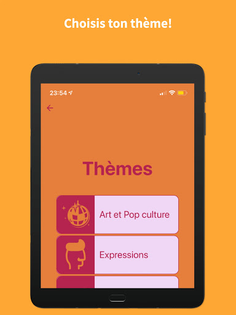 4 catégories de jeu (Expressions, Improbable, Art et Pop culture et rébus)