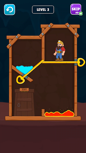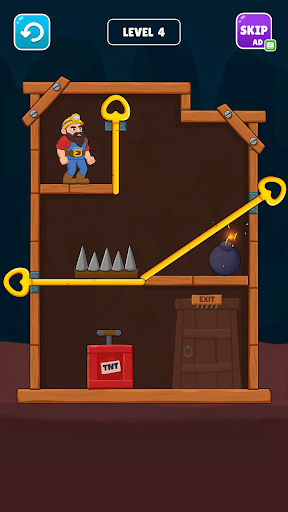 Mine Escape is a challenging and addictive pull pin puzzle game where you must help a miner escape a dangerous mine by pulling the pins in the correct order. Each level presents you with a new obstacle, such as bombs, lava, and falling rocks. You must use your logic and problem-solving skills to pull the pins in the right order to create a safe path for the miner to escape.