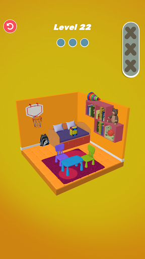 It is not as easy as it seems. You have to remember the set room and then place the jumbled things.
