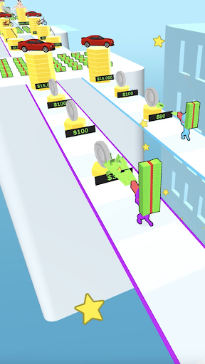 You have to collect a lot of money quickly and use it and your money gun to advance to the next stage.