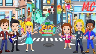 My City: New York kids games! This is your chance to create your own story and adventure in the busiest city in the world. In My City: New York you can play mini games. Get on the bus in NYC and explore the Times Square! Watch the amazing wizard of Oz or the Cats Broadway Show and then explore the Statue of Liberty. If you want to relax, explore the Central Park where you can visit the hungry penguin family , have a picnic or a painting can also be made of you. Eat a hot dog on the streets of NYC or go to an NYC restaurant where you can eat pancakes, ice cream 🍦, or fast food. What kind of ice cream do you want?