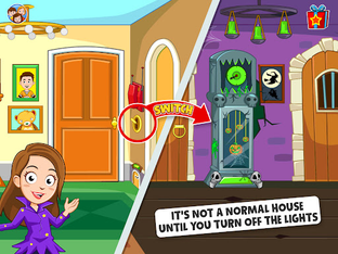 It may look like a regular doll house when the lights are on, but once you switch them off, the mystery mansion turns into a Haunted House full of ghosts, witches, and other spooky Halloween game characters! Sneak inside the My Town Halloween Haunted House and unravel the spooky mystery in this scary game for kids.