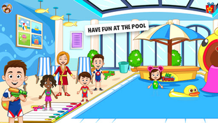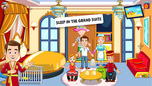 Visit all the dollhouse rooms in this Grand Hotel and create your own Vacation Hotel Stories! Explore all locations like My Town Restaurant, Grand Hotel swimming pool, Grand Hotel lobby, rooms and let the doorman show you how the elevator works. The fantastic family hotel you need to visit! Enjoy Vacation games for kids at My Town Hotel all day and create your own vacation hotel stories!