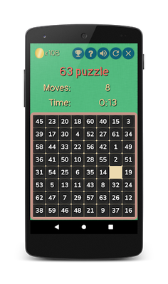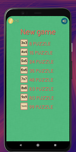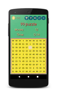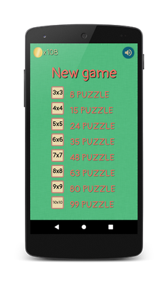 The game with a 4-by-4 field (15 puzzle) is also known as the Gem Puzzle, Boss Puzzle, Game of Fifteen, Mystic Square and many others. It is a sliding puzzle having N square tiles depending on the selected level. There are games with 24, 35, 48, 63, 80 and 99 tiles. This field is: 5-by-5, 6-by-6, 7-by-7, 8-by-8, 9-by-9 and 10-by-10, respectively.
